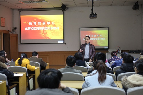 12月15日,教育发展中心在东营校区成教楼进行了消防安全知识培训,东营校区的全体员工共40余人参加了此次消防培训活动。教育发展中心党委书记赵东冶主持并作东营校区安全工作部署。培训活动特别邀请了学校公安处安全消防科科长李曙光现场讲授和演练消防安全知识及消防器材的使用。